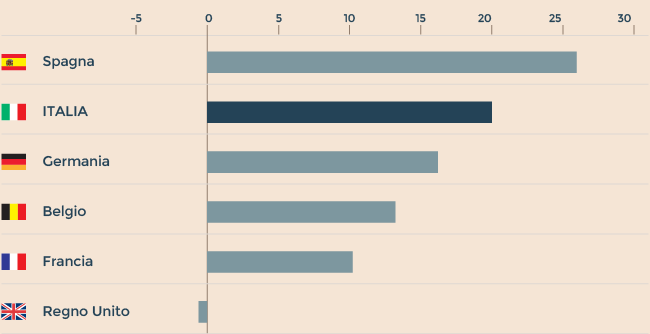 Variazione % delle esportazioni 2010 - 2016. (Fonte: Federchimica)