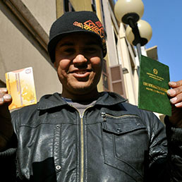 Un immigrato dopo aver ritirato il permesso di soggiorno al commissariato di Ventimiglia (foto Ansa)