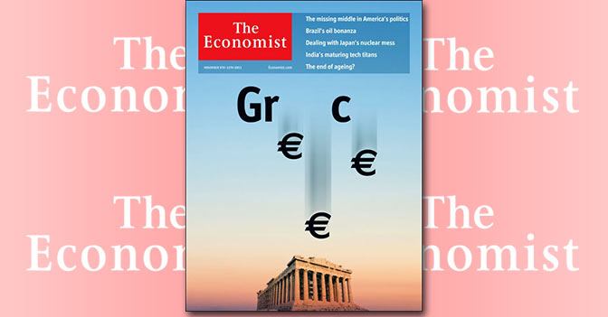 La crisi dell'eurozona è apparsa la prima volta sulla copertina del settimanale economico esattamente due anni fa. Da allora altre 14 cover sono state dedicate ai guai finanziari dell'Europa. L'ultima è ancora focalizzata sulla tragedia greca e la possibile uscita del Paese dalla Ue