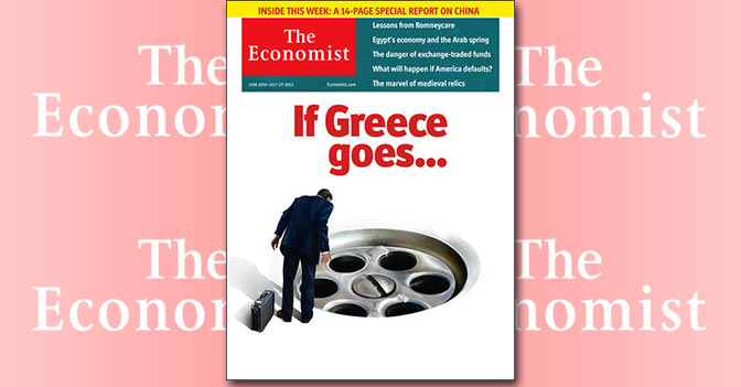 La crisi dell'eurozona è apparsa la prima volta sulla copertina del settimanale economico esattamente due anni fa. Da allora altre 14 cover sono state dedicate ai guai finanziari dell'Europa. L'ultima è ancora focalizzata sulla tragedia greca e la possibile uscita del Paese dalla Ue