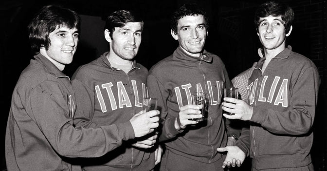 Mondiali Messico 1970: R. Boninsegna, T. Burgnich, G. Riva, G. Rivera (Olycom)