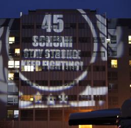 Il rosso, il colore dell'amore ma anche della Ferrari, ha invaso per tutto il giorno il parcheggio dell'ospedale universitario, dove si sono radunati tantissimi tifosi della Rossa e del suo campione che hanno accolto l'appello della Ferrari ai propri club in Francia e in Italia a far sentire da vicino il loro sostegno. Giunti anche dalla Germania, dalla Spagna, da mezza Europa, sventolando bandiere ed esponendo striscioni intorno al grande "cuore Ferrari", un enorme drappo con il Cavallino rampante, tutti insieme hanno reso evidente l'ancora stretto legame che unisce il campione e i suoi fan.
