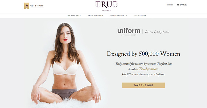 Non è un semplice negozio online di lingerie come tanti. True & Co promette – e riceve finanziamenti milionari per farlo diventare realtà – di accoppiare le forme femminili con il perfetto capo di vestiario usando poche domande online e un algoritmo intelligente. Per farlo, ha assunto il capo della tecnologia di Netflix, sito internazionale che manda in streaming milioni di film, e ne suggerisce sempre di nuovi basandosi sui tuoi gusti. Collegandosi si trova una sequenza di domande che, "macinate" dall'algoritmo segreto, produrranno le misure ideali. Segue acquisto online, sperano i gestori del sito, ma soprattutto meno resi, una delle "croci" di chi fa e-commerce, soprattutto di vestiti.