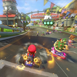 Quando si accende Mario Kart 8 (qui il video), tuttavia, i numeri record passano in seconda fila e l'adrenalina prende subito il sopravvento: bastano pochi passi dall'inizio del gioco per trovarsi a sfrecciare sull'asfalto - e sui muri! - di 32 nuovi circuiti appositamente disegnati dal team di track designer in vena di miracoli!